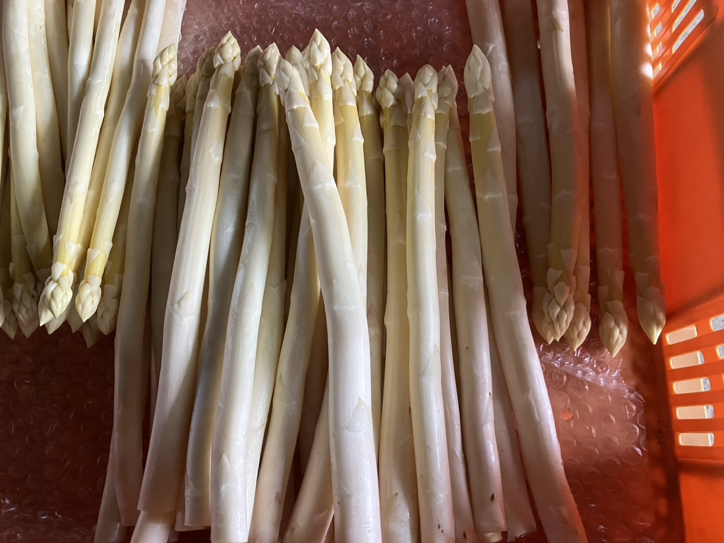 ホワイトアスパラはより柔らかく繊細で水分量も多い為、生育にも手間が掛かり、遮光等手間隙かけて育てています。